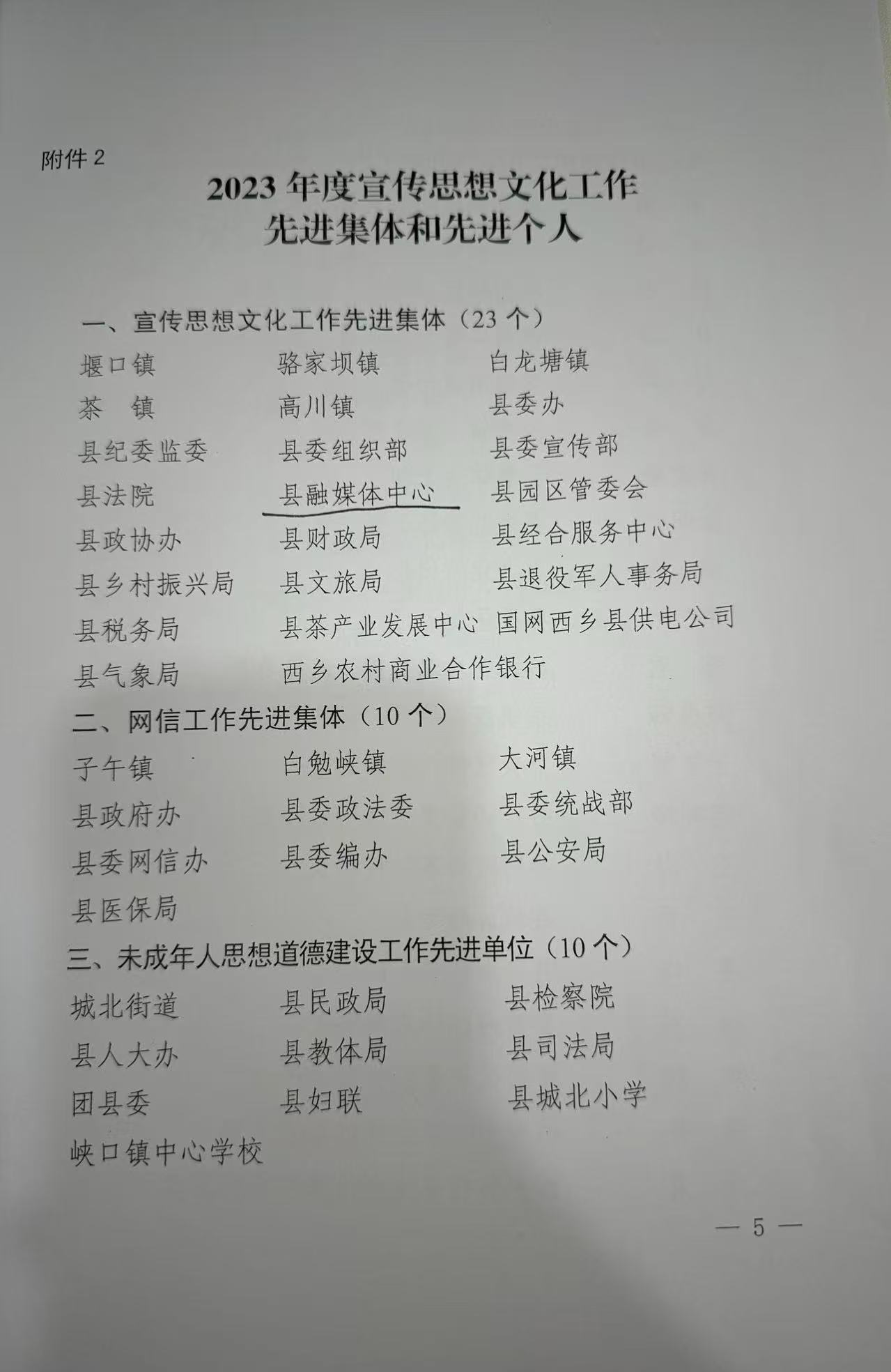 10余名同志分别被评为汉中市优秀新闻工作者、2023年度茶乡先锋和2023年度最美西乡人等荣誉称号。