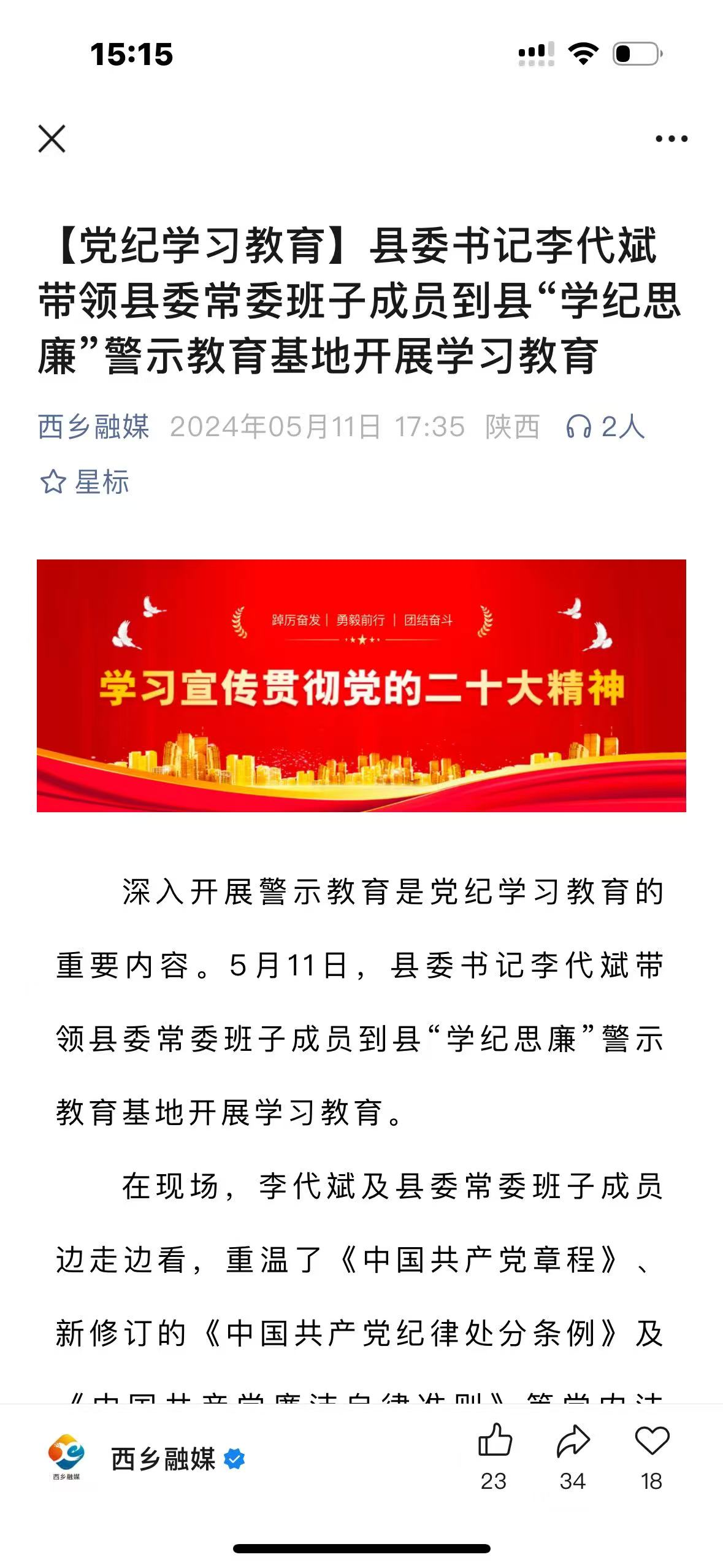 二是做好党纪学习教育宣传报道。开设《党纪学习教育》等专栏20期,及时跟进报道开展党纪学习教育的进展情况和典型经验,录制西乡县违纪违法典型案例警示教育片《铁律如山》等专题片,推动党纪学习教育在西乡走深走实。