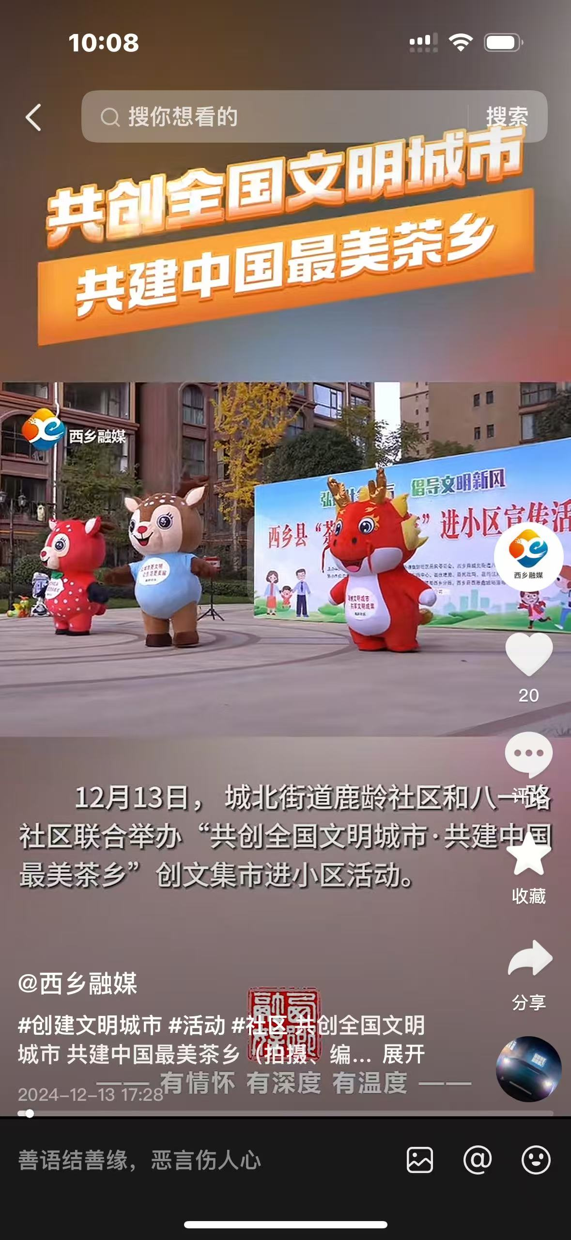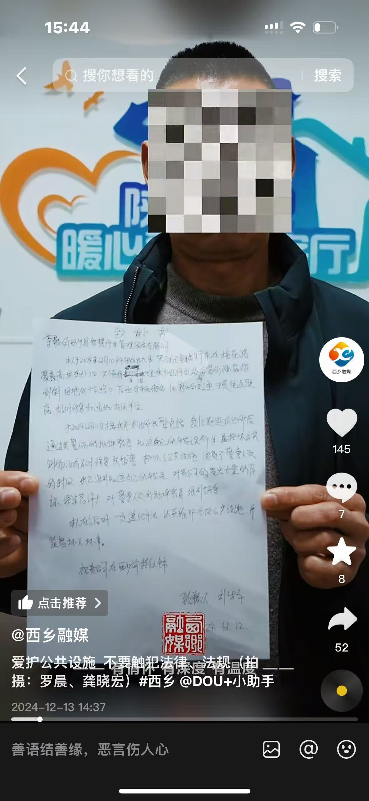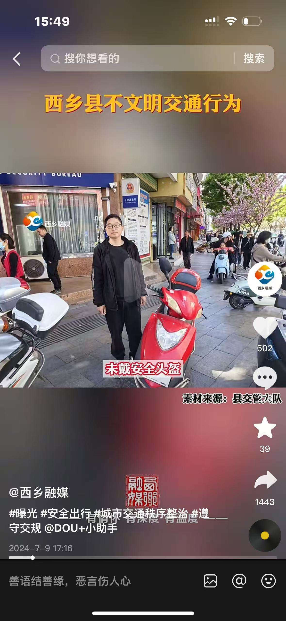 在县委宣传部的指导下,西乡县融媒体中心围绕全国文明城市创建、文明交通、预防电信网络诈骗等方面,积极发挥媒体舆论监督作用,制作系列短视频以及《城市综合创建存在的问题》五部,及时对不文明交通行为、破坏环境不文明行为进行了曝光,同时公布监督举报电话,抑恶扬善,传递社会正能量,正确引导舆论。