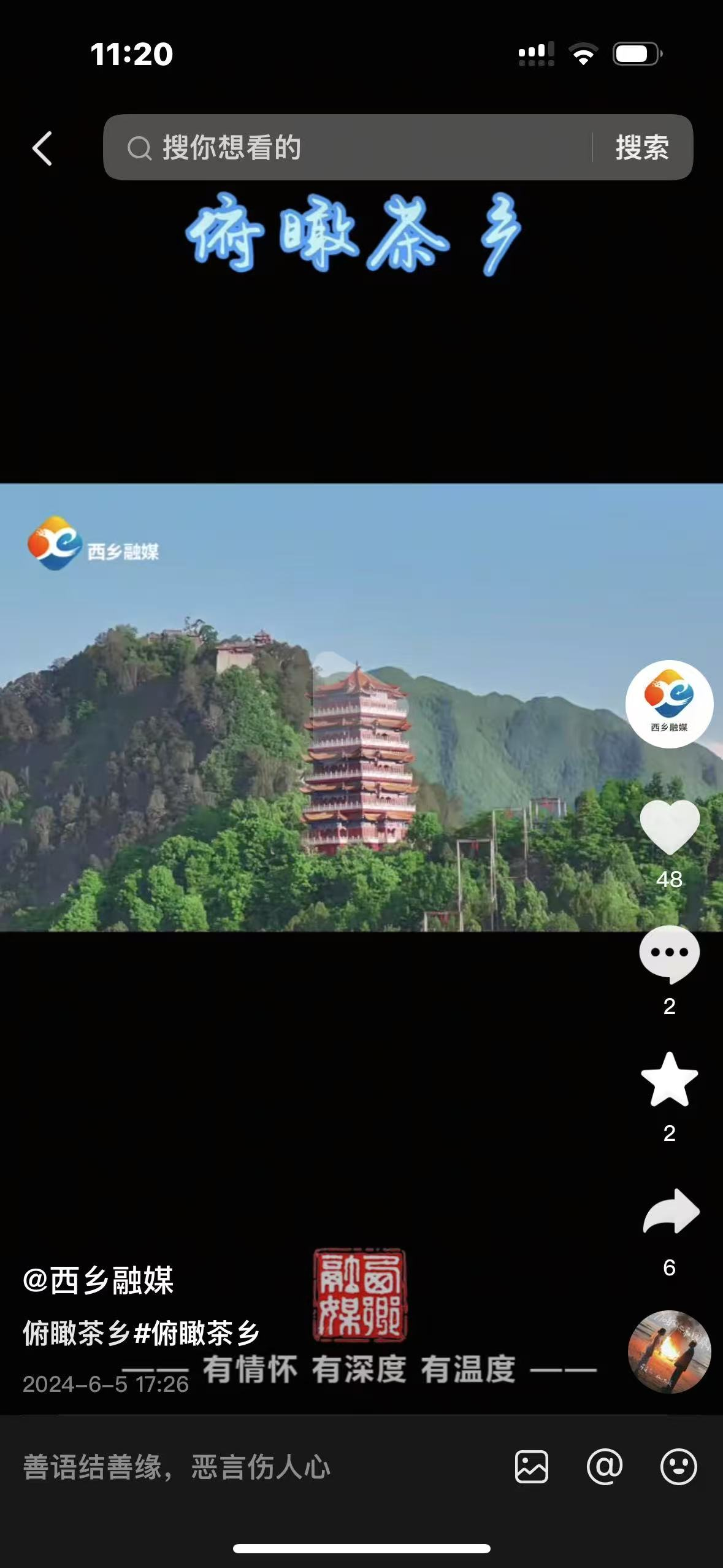 大力弘扬中华优秀传统文化,增强广大民众文化自信。开设“网络中国节”专栏,围绕春节、元宵、清明、中秋等传统节日开展宣传报道,传承中华传统节日文化内涵,共唱和谐美丽西乡。深入开展报道三月三文化节、经典诵读等活动,坚定文化自信、文化自强持续倡导优秀传统文化。开设《网络中国节》宣传报道16期,带领公众进一步了解我国传统节日与渊源,提升群众文化内涵;开设《俯瞰茶乡》专栏,发布视频41条,发布《秦巴画卷、灵秀茶香》10期、制作《秦巴画卷灵秀茶乡风光宣传片》8期,持续介绍鸟瞰下的西乡不同风光美景,充分展现我县地域特色领略不同时节的茶乡之美,受到社会群众广泛喜爱与点赞。