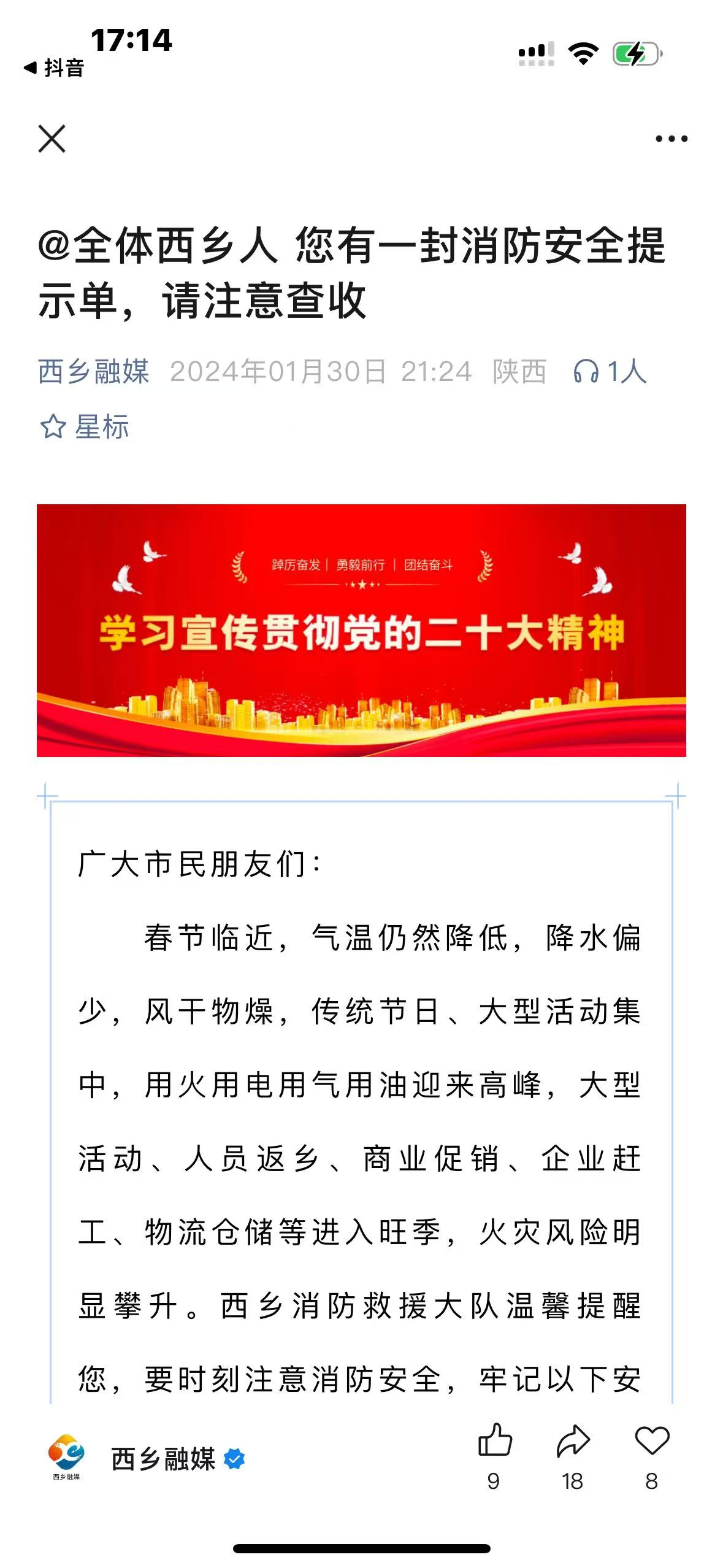 立足地域特点,大力宣传文化科技卫生“三下乡”活动、校园科技文化节活动,深入报道《数字赋能陕西西乡县教育优质均衡发展》《全县各学校开展形式多样的教育活动》《西乡各学校上好“开学第一课”》等活动,向大众更加直观、全面的展示我县的教育教学风貌。根据季节特点,先后推出《汛期防溺水通告》《@全体西乡人 您有一封消防安全提示单,请注意查收》系列报道,得到群众一致认可,持续开展防电信诈骗、消防安全、交通安全、安全生产、森林防火、国家安全等科普知识,进一步提高群众安全防范意识。